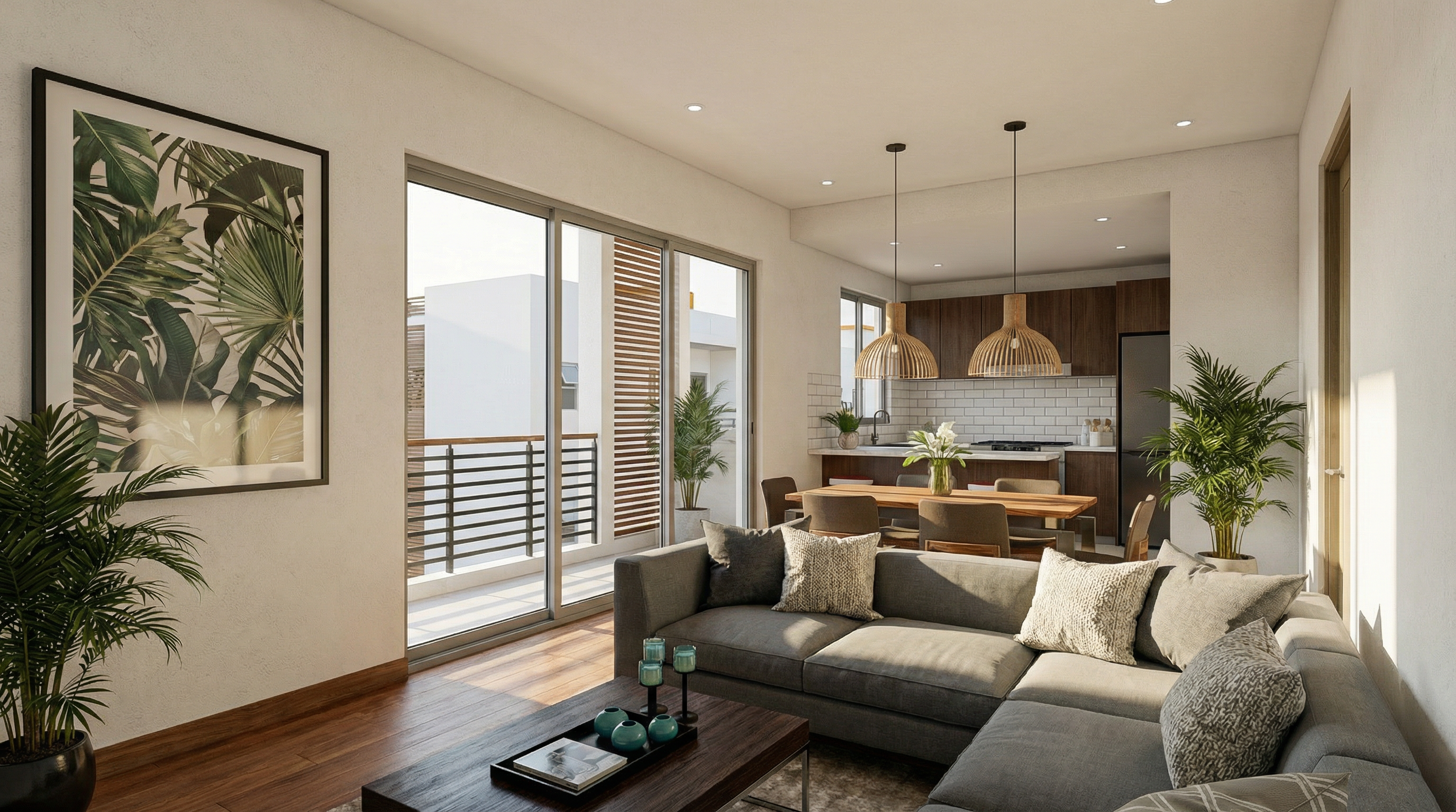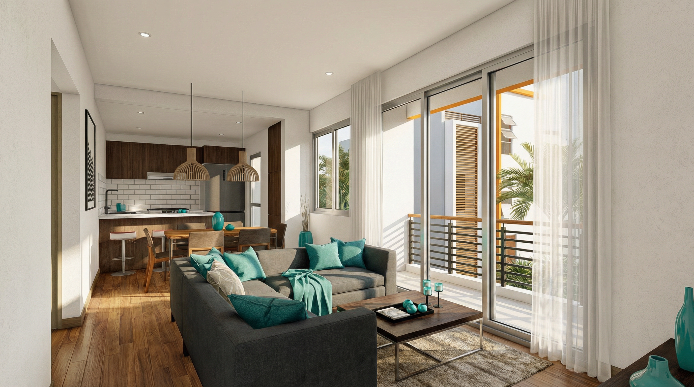 Espacios abiertos con acabados premium, iluminación natural y diseño contemporáneo caribeño.
